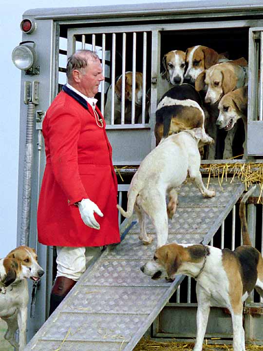 In Windeseile sind alle Hunde aufgeräumt … schließlich wollen die Reiter der Equipage auch mal einen Schlag Suppe essen, und die Pferde sind ja auch noch zu beaufsichtigen. Also kommen die Hunde während der Pause in ihren Transporter.